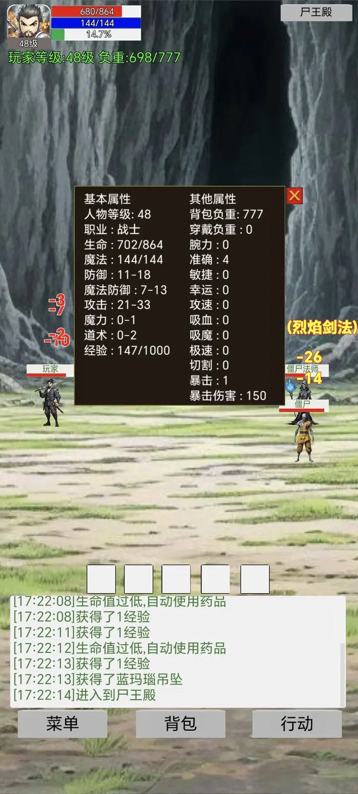 9、有群攻很快就50级了,差不多能去挂尸王殿了,还得看极品防御装备多不多,把技能书全部挂满,挂不住尸王殿就挂尸王上一层,僵尸法师也是物理攻击的,把技能书挂满,能挂尸王殿最好,因为出所有技能书