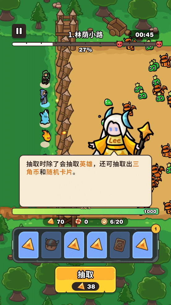 抽抽抽英雄是一款以抽卡为核心的塔防策略手游,每一局战斗都充满随机性和惊喜感。玩家通过抽取英雄、卡牌与资源来构建自己的战斗体系,不同英雄和卡牌有不同的定位,需要灵活调整阵容才能抵御怪物的进攻。游戏玩法简单又刺激,点击拉霸就能体验随机掉落的快感,抽到传说级甚至神话级英雄也是有可能的。每次抽卡不仅会获得英雄,还可能额外得到三角币或卡片奖励,抽到卡牌后还需要从三张候选卡中选择一张作为最终奖励。