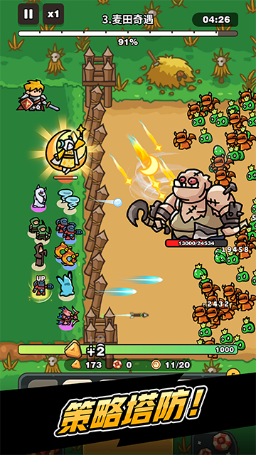 3、透过不断升级增强你的战斗能力,打败一波又一波的敌军潮