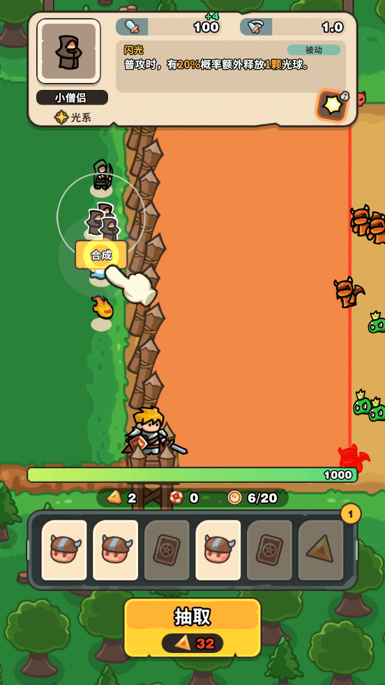 2、当拥有三个相同英雄时,可合成为更高等级的英雄单位。