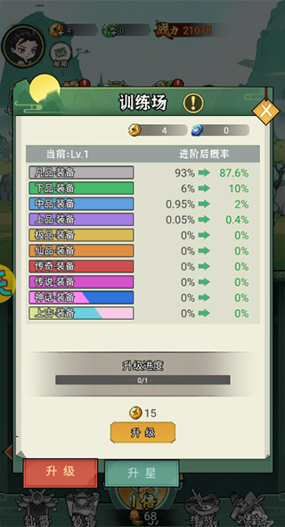 5、金币足够后,可以提升训练场的等级,增加高级装备的获取几率。