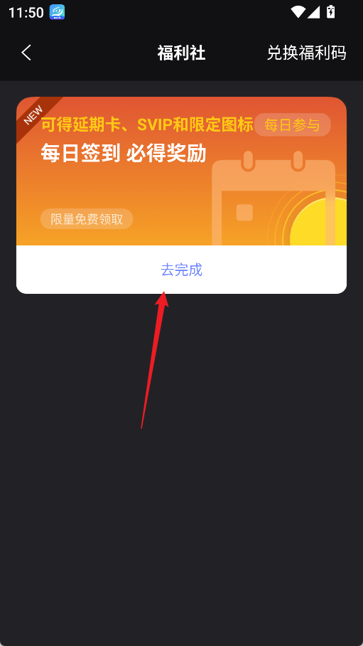 3、在福利社中点击去完成
