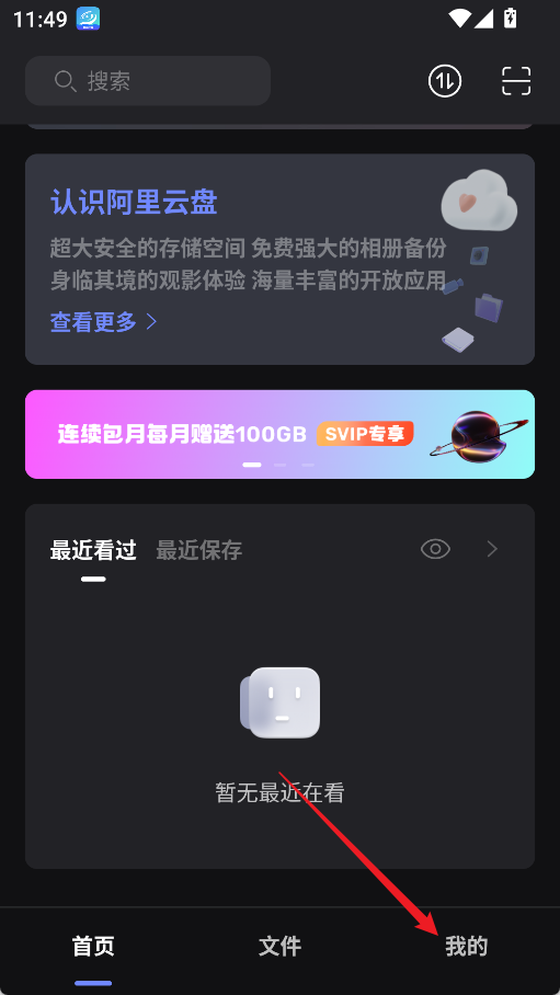 1、打开阿里云盘手机版,点击底部的【文件】功能进入文件列表。