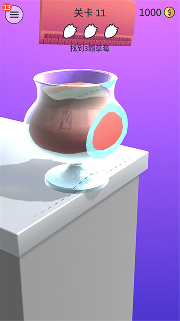 玩家通过滑动屏幕来控制刀具的移动,目标是将物品切割成小块;在切割的过程中,玩家需要注意避开障碍物,否则可能会切割失败;