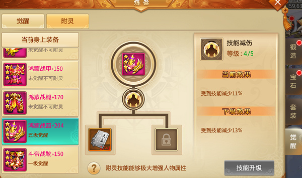 界面位置:炼器-觉醒-附灵标签页