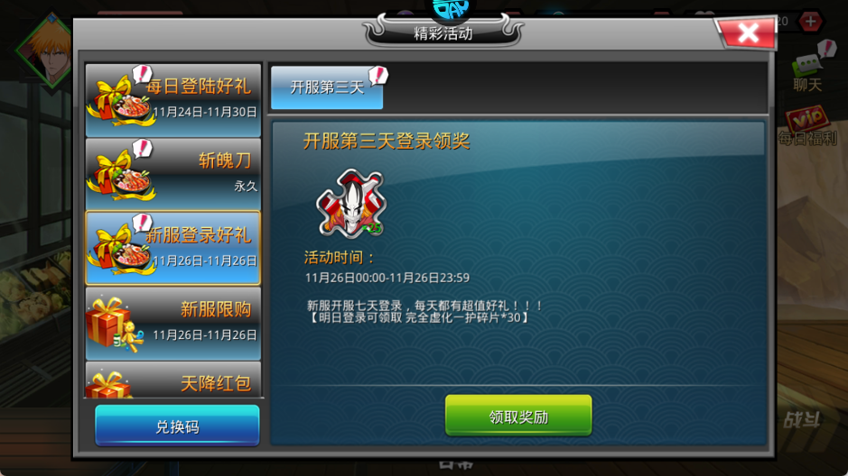 3、新服登录好礼