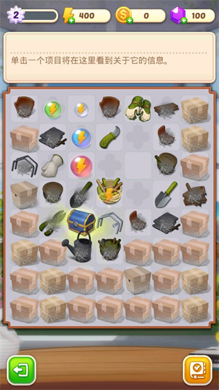 游戏里需要用各种工具来清理和装饰庄园,比如斧头、手套这些道具都需要通过合成获得。合成的过程也很有趣,两个相同的物品可以变成新的道具,成就感十足。游戏界面设计得很精美,欧美风格让人感觉很放松。