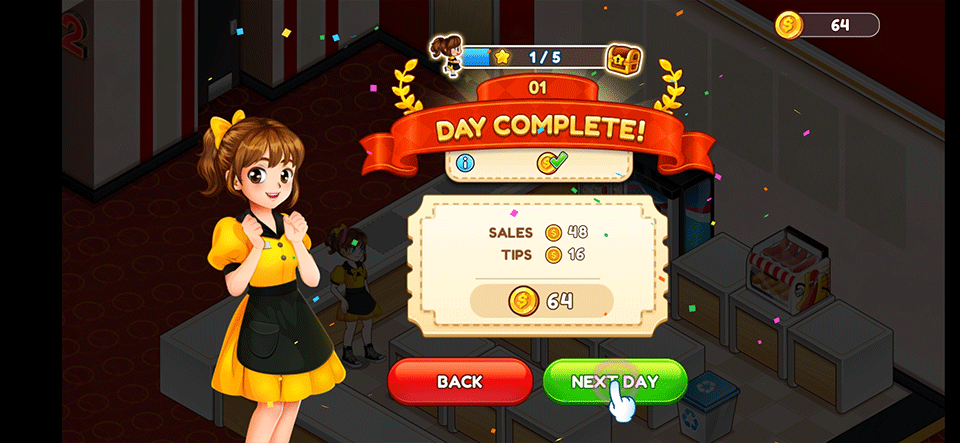 4、当所有顾客的订单都顺利完成后,便能成功通关并解锁下一天的新挑战;