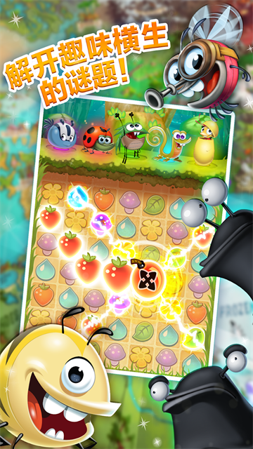 想快速提振结神吗?那就进入充满三消乐趣的卡通世界,帮助这些可爱的损友们击败邪恶的蛞蝓吧!