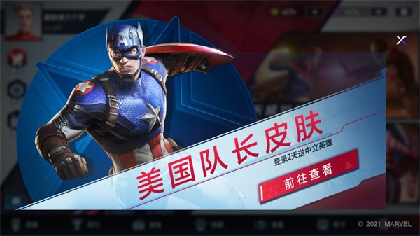 次日登录游戏,即可前往游戏内活动页面领取英雄皮肤-美国队长。