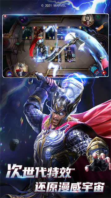 游戏的画面特效非常华丽,3D建模和CG级动画让角色栩栩如生,配上经典CV配音,完全沉浸在漫威世界里。玩法上强调策略性,玩家可以自由组合卡组,尝试各种英雄搭配,比如让雷神和洛基并肩作战,或者钢铁侠与蜘蛛侠联手。