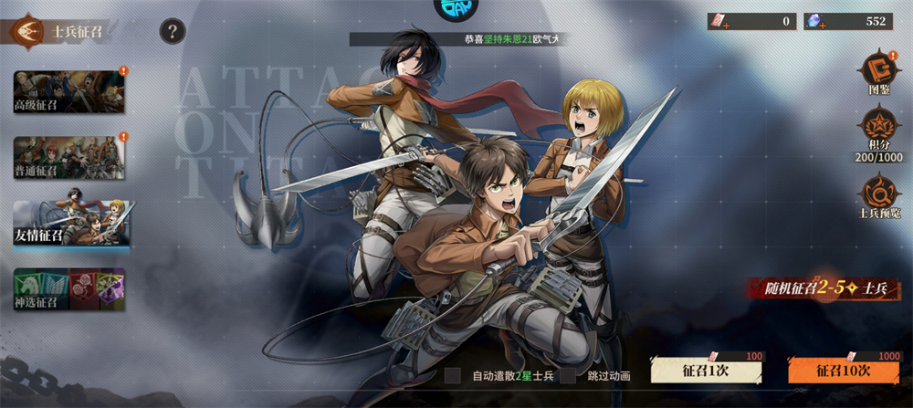勇士觉醒进击的巨人手游招募玩法介绍