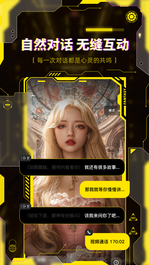 2、与AI进行互动聊天:用户可以与自己的AI聊天伙伴进行自由对话,享受高质量的聊天体验。