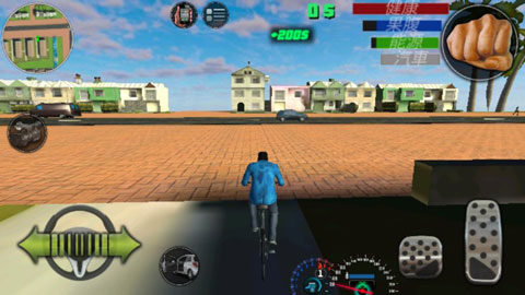 1、游戏玩法:总的来说游戏还算不错,玩过的朋友都会觉得可以,左侧遥感控制角色行动,右侧一系列的动作,攻击和武器切换简单的熟悉一下也容易上手,紧接着下方在遇到事项会触发,例如走到车边上会跳出上车的按钮,中上方还有许多系统按钮,例如打车,电话,任务都是在这里获取。