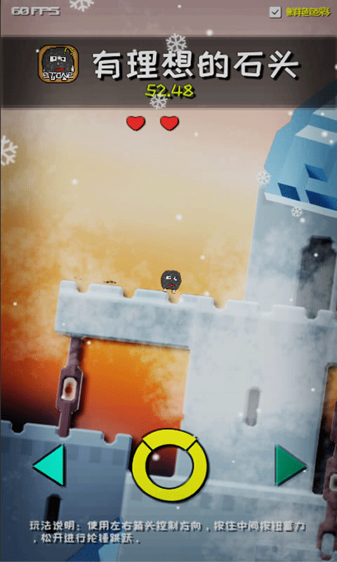 3、简约的游戏风格,新奇趣味的冒险挑战,让你能帮助这个石头登上山顶完成它的梦想。