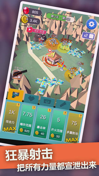 1、丰富的武器系统:丰富的武器效果,多重散射,强化你的武器,享受射击的快感!