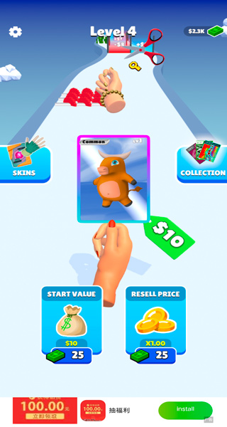 2、操控自己的卡牌去进行跑酷来增加卡片的稀有度,升级为更加稀有的卡片,十分有趣的内容玩法,可以轻松体验;