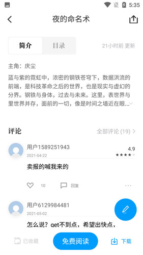 5、在评价界面中,用户可查看到他人对小说的评价;