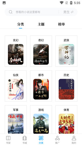 4、点击书城按钮,就能快速浏览到各种优质小说;
