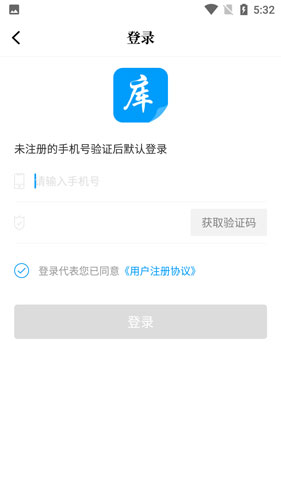 2、在登录界面中输入手机号后,获取验证码登录;
