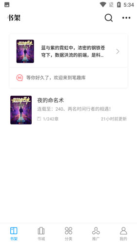 3、在书架界面中,用户可查看到加入到书架中的小说;