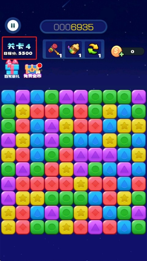2、游戏采用两连消的基本规则,即两个颜色相同的星星方块相连就可以消除。同时,玩家也可以尝试进行多连消,即一次性消除多个相连的星星方块,这样可以获得更高的分数。