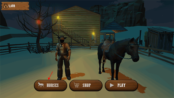 1、下载进入西部牛仔模拟器游戏,点击"PLAY"开始游戏;