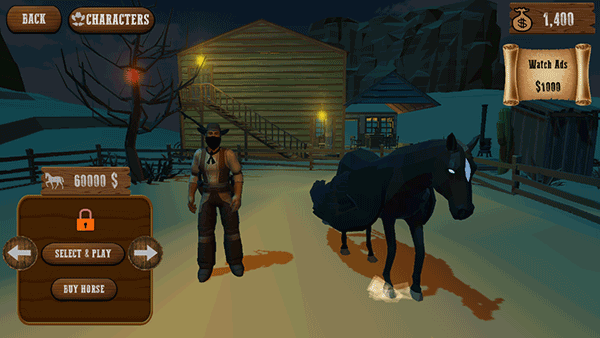 操作起来也挺简单的,通过滑动屏幕控制方向,点击按钮就能骑马、攻击或者驭马。每次成功避开障碍、击败对手都能获得奖励,感觉挺有成就感的。特别是游戏画面还原了美国西部的独特文化,让人仿佛置身于那个牛仔横行的时代。