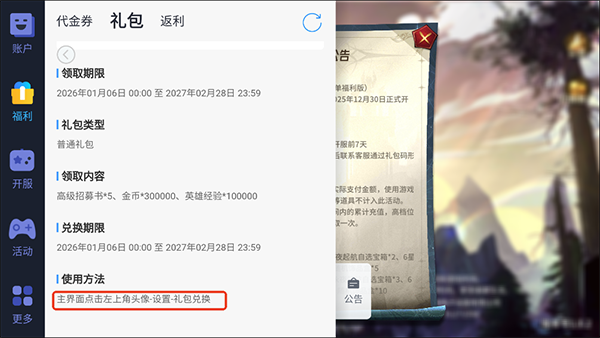 神级勇士官方版兑换码领取教程