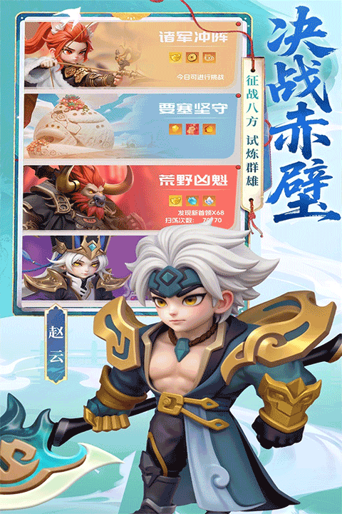 海量三国英雄自由招募,组建专属萌将天团,满足收集控的终极幻想