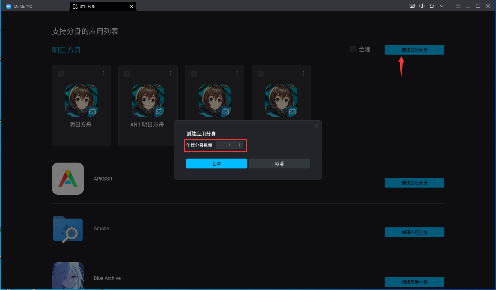 注:应用多开单次批量创建上限为9个,且多开的应用需要重新下载游戏资源。