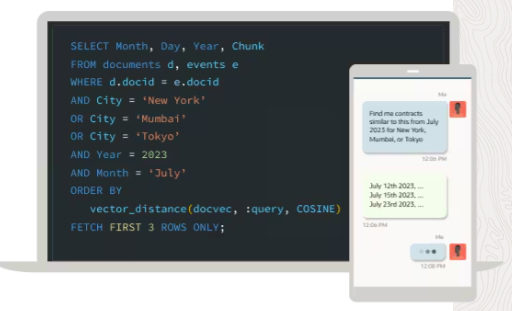 将 AI Vector Search 与关系型、文本、JSON、知识图谱和空间搜索结合,实现对相关文档、图像、视频、音频及结构化数据的检索。客户可轻松将 AI Vector Search 与 LLM 结合,用于搜索私有数据,LLM 可将其与公共数据整合,以回答业务问题。