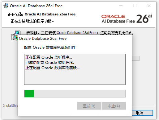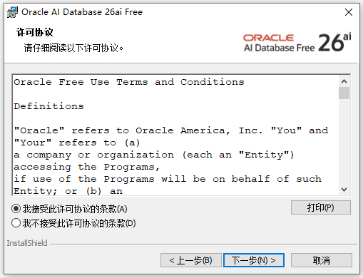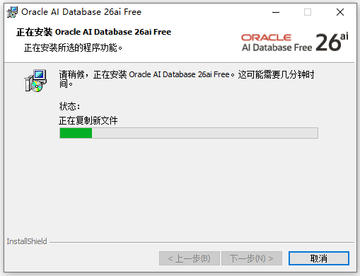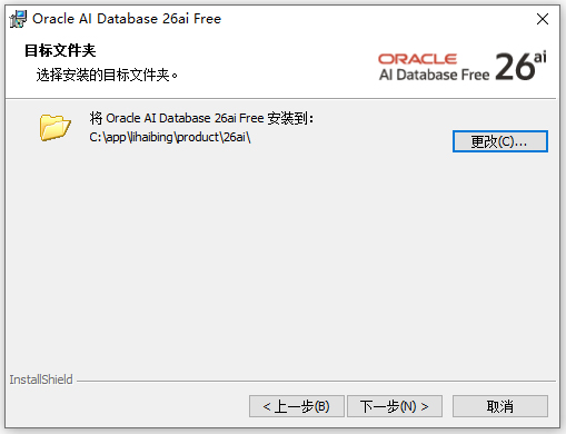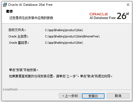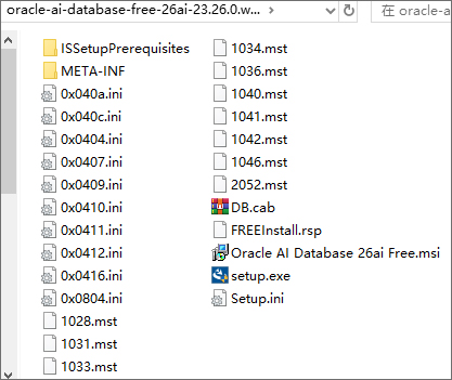 1、下载解压,得到Oracle AI Database 26ai Free,双击setup.exe开始安装;