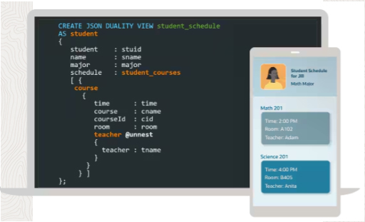 2、您可以利用 JSON Relational Duality 简化文档模型,从而获得关系框架的可扩展性。