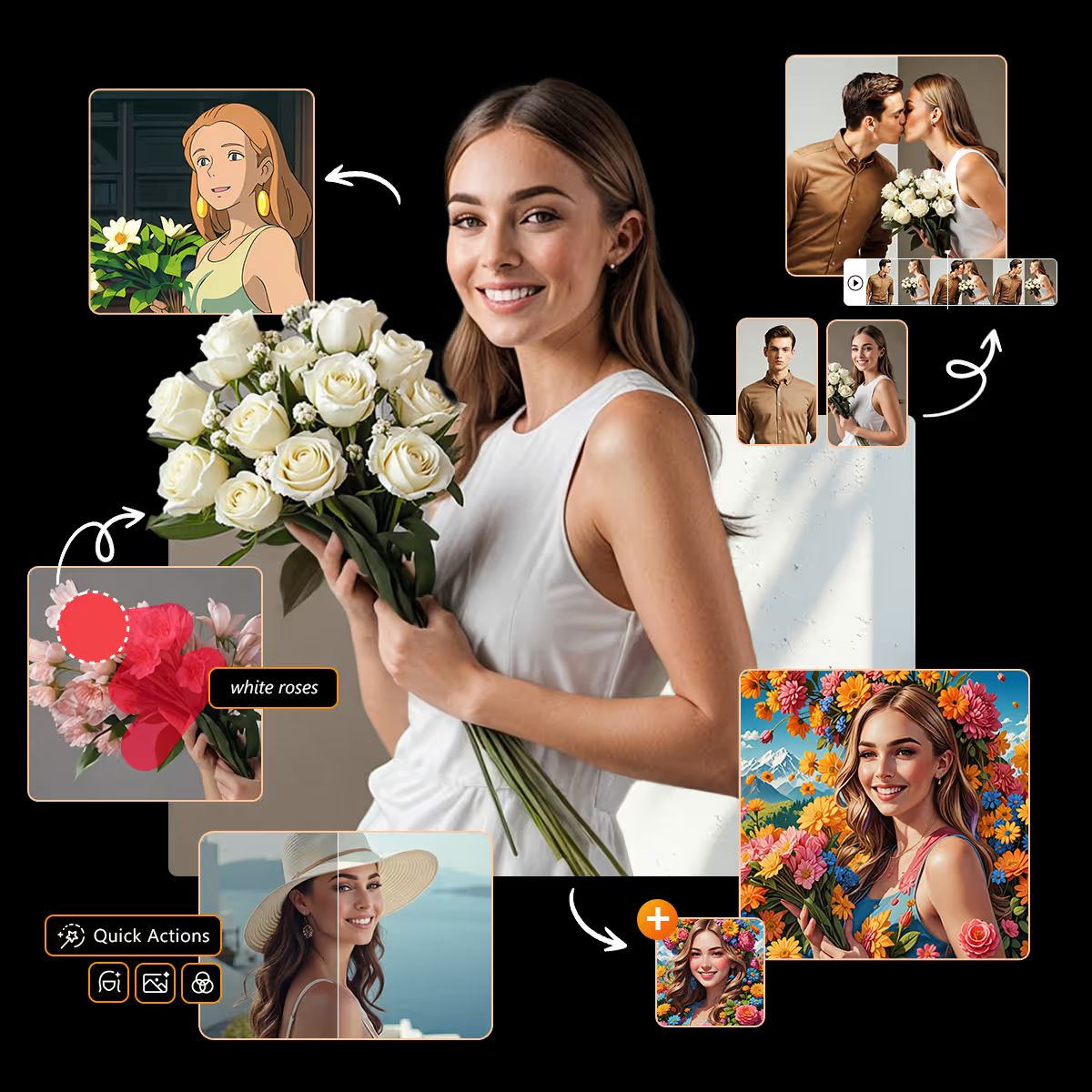 轻松同时编辑多张照片,一键画质修复、美化修饰、调整大小、裁切和更换多组照片的背景,实现极致效率。
