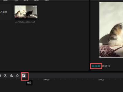 4、默认让视频文件处于开始的位置,然后点击界面右下角的裁剪图标。