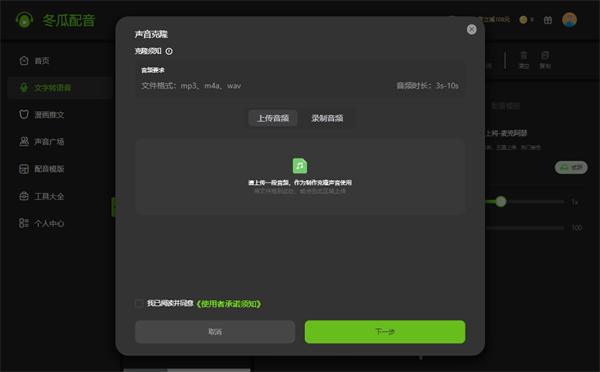 冬瓜配音电脑版是一个非常强大的配音工具,功能超级齐全,操作也简单。它不仅能将文字转成语音,还能直接复刻你的声音,感觉特别酷!不想用自己声音的话,还可以在“声音广场”里选主播音色,里面有超多风格的声音可以选择,完全能满足各种需求。