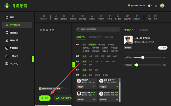 3、声音广场:搜索你喜欢的主播、角色一键生成同款。