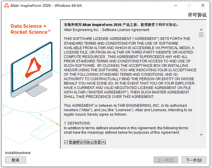 4、从文件“AltairInspireForm2026_win64.zip”解压出来AltairInspireForm2026_win64.exe文件,双击安装运行;