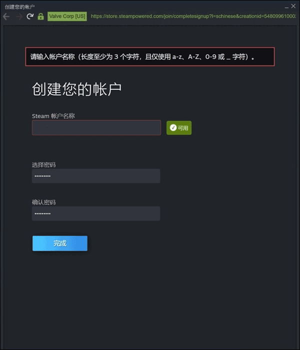 a、Steam的密码格式只需要包括英文字母大写、英文字母小写、数字,其需要包含其中两个,而且长度不能太短,至少需要6~8位数密码,以英文字母开头。