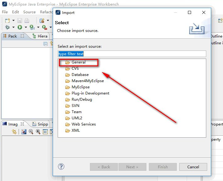 3、在"Import"窗口中,选择第一个"General",