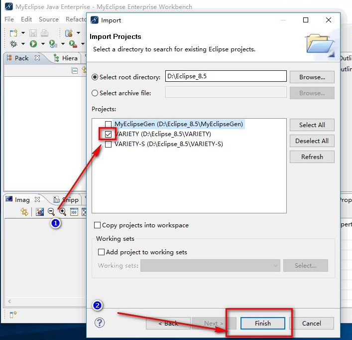 8、把想要打开的那个项目前面打上勾,然后点击下方的"Finish",这样就成功的导入项目了。