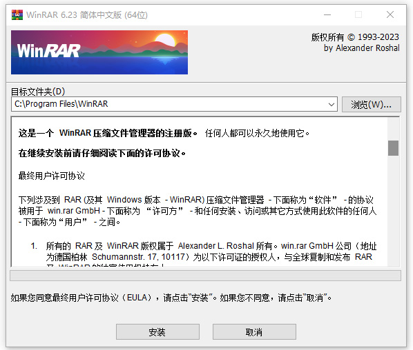 1、下载解压,得到64位的winrar烈火汉化破解版,依提示安装软件;