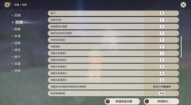 游戏默认按键为下图,玩家也可以选择更改默认按键