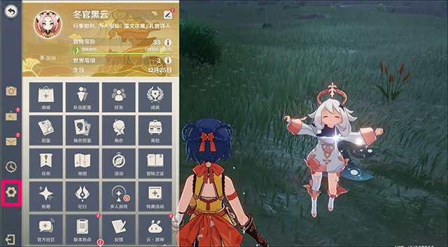 1、运行游戏后,在游戏中按下Esc键呼出派蒙界面后,找到并点击“设置”功能选项;