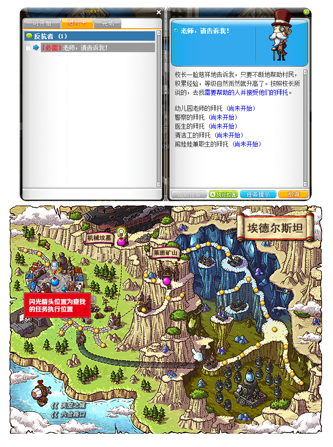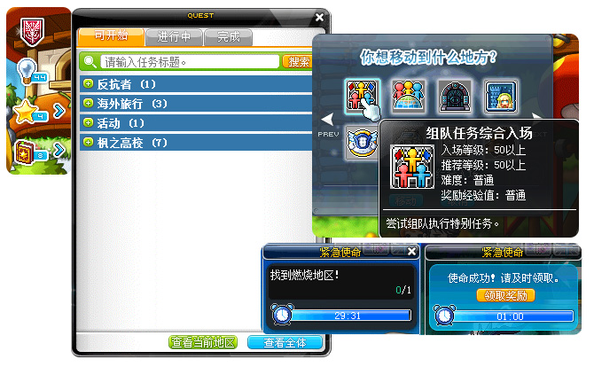 目前冒险岛的任务系统,主要包括各职业的特定任务,各主题副本的任务,活动任务,野外地图的突发任务、组队任务等。不同任务触发的等级不同,在升级的同时请务必留意新触发的任务哦!完成后不仅可以了解峰回路转的冒险剧情,还有不菲的报酬哦!