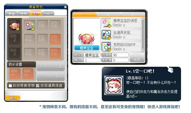 在冒险岛会有各种各样的宠物陪你一起冒险!它们拥有各种便利的技能,可以为你提供属性加成、拾取金币道具等等各种不同的帮助!