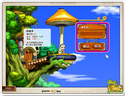 选择好职业群过后进去角色创建窗口。输入角色名字,确定。取消则回到上一级菜单。