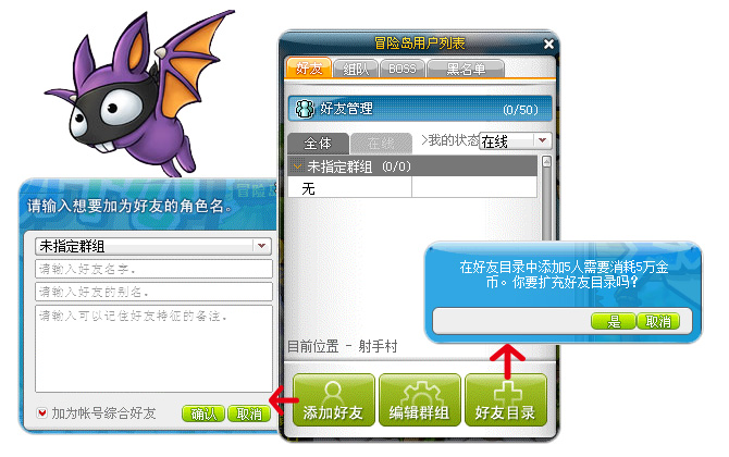 的名字,即可添加。而后可以直接在好友菜单内,进行聊天邀请,组队邀请,都非常方便~~