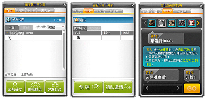 6、通过选择不同的标签,可以查看当前角色好友、组队情况,并可以直接选择Boss开始挑战!